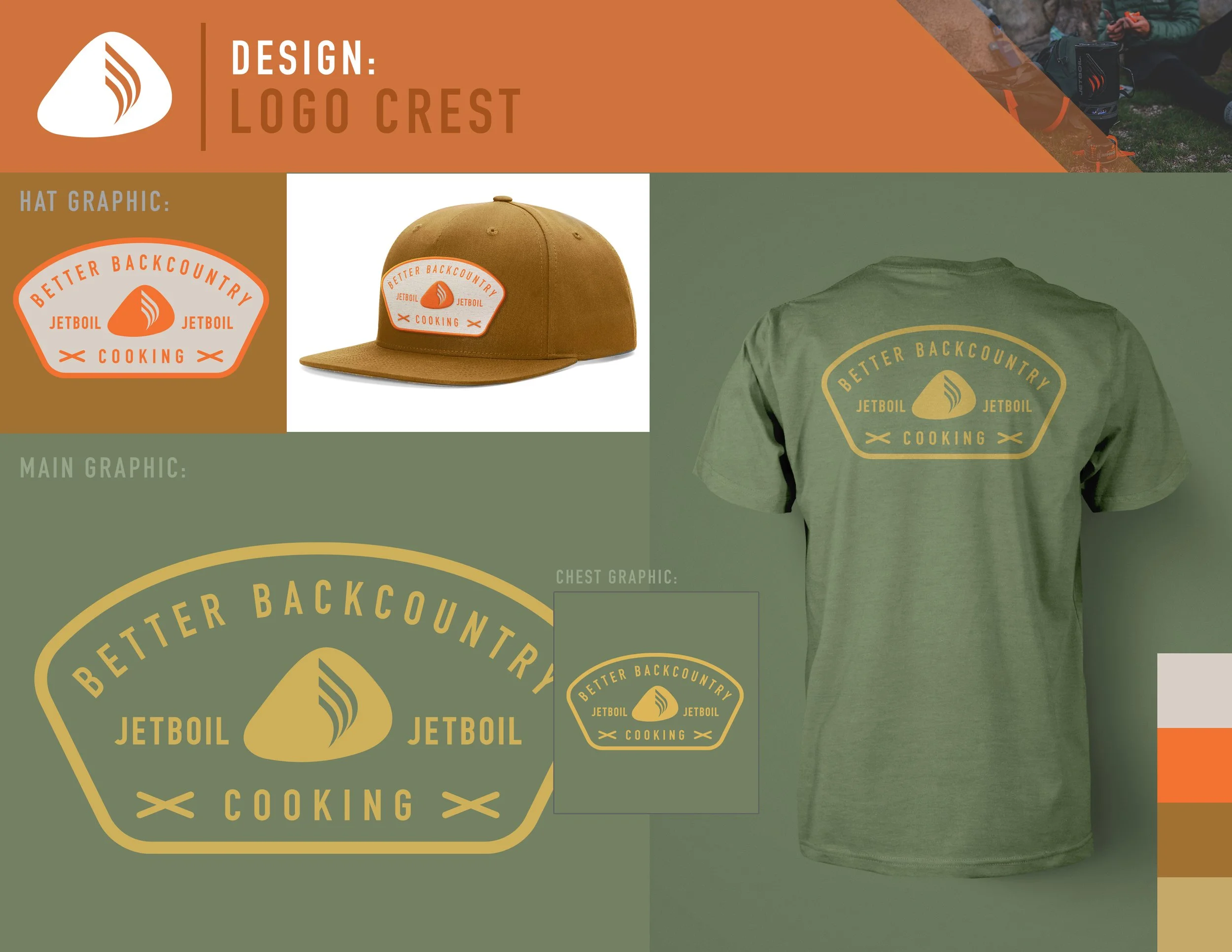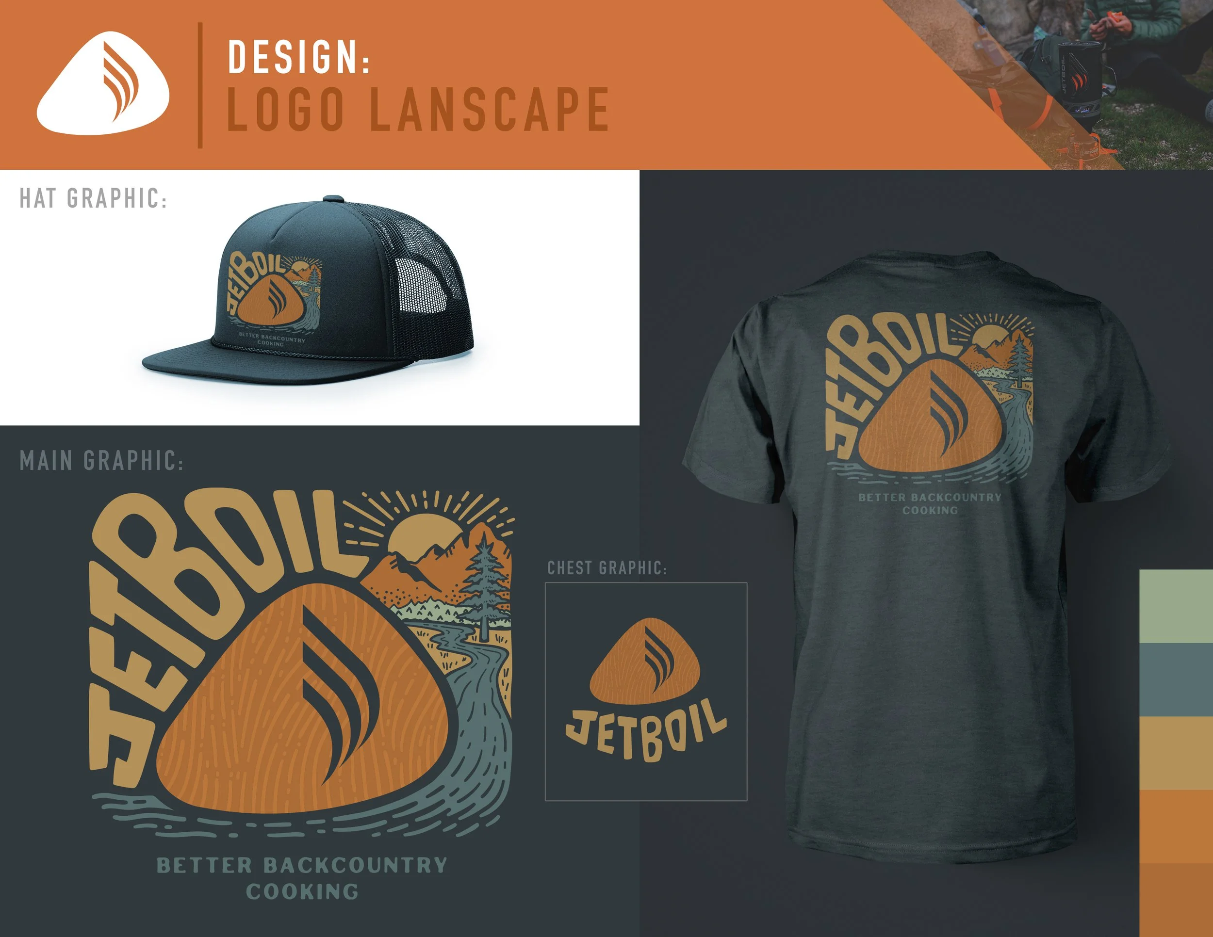 The opportunity to work with an outdoor brand like Jetboil was awesome! They're producing an industry-leading camp stove that almost every outdoors person either owns or has heard of. I had the chance to create promotional apparel graphics for them to use during events and other company marketing. I created retro-inspired characters based on their famous stoves and graphic sets that would work across shirts and headwear.